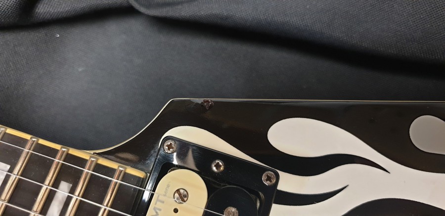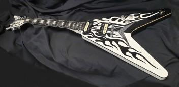 Guitare électrique DEAN modèle signature Michael Schenker édition spéciale Flames Black and White. Made in Korea. Livrée en étui. Très bon état général, sauf petit coup sous le micro manche...D'où le tarif. Tarif 750 € ttc