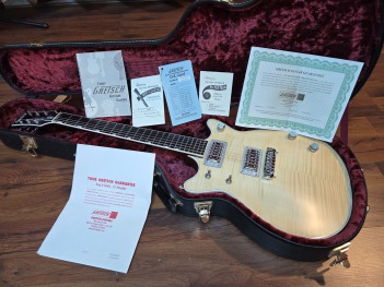 Guitare électrique GRETSCH modèle signature Malcolm Young G6131MYF 2008, livrée en étui Gretsch d'origine, certificat et documents d'origine fournis, bon état, parfaitement réglée. Tarif 2650€ ttc